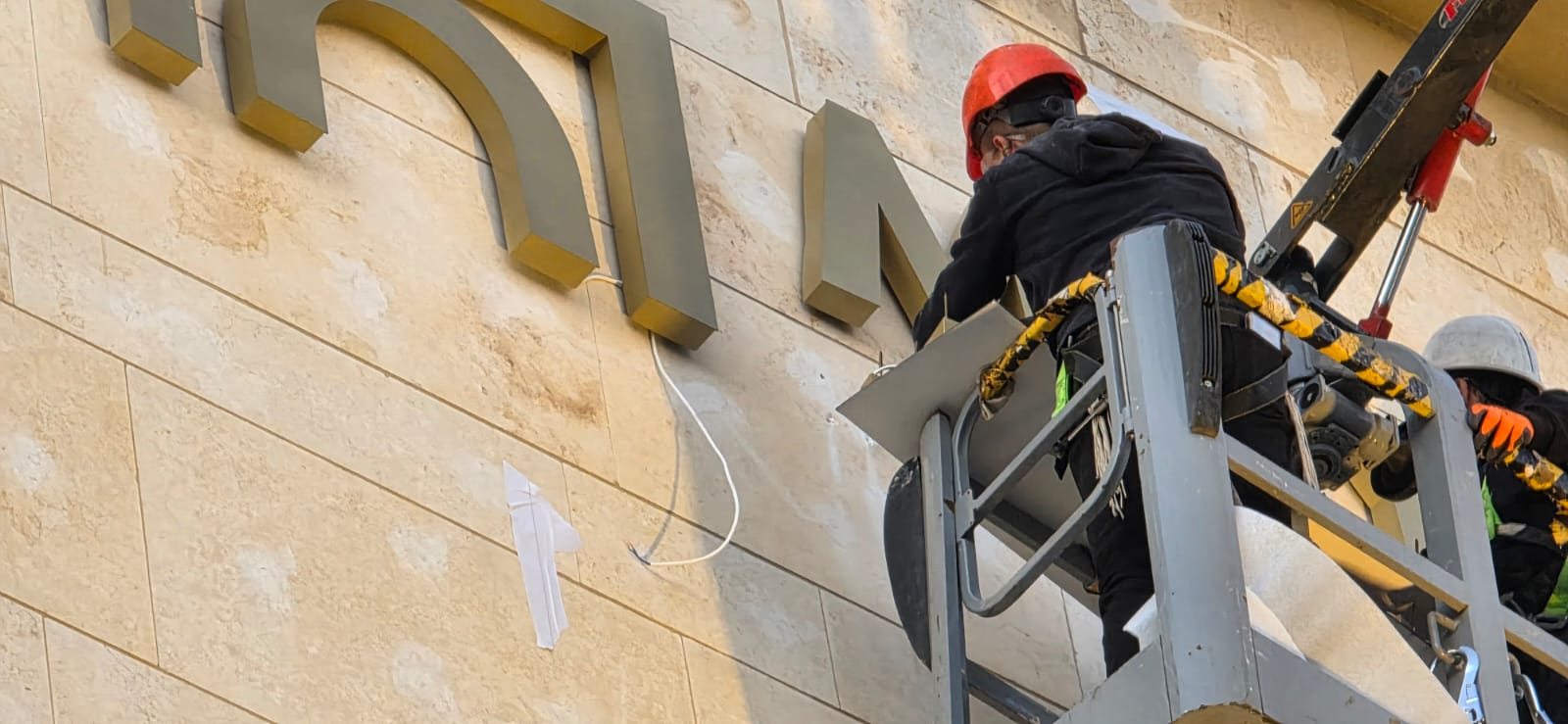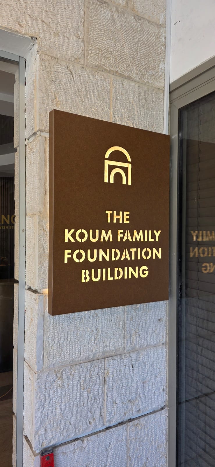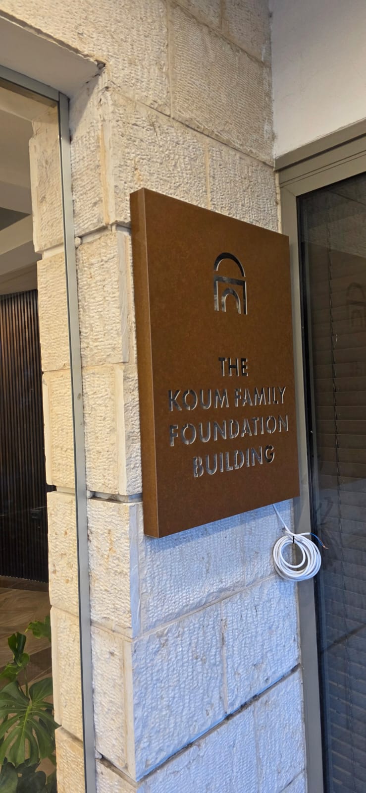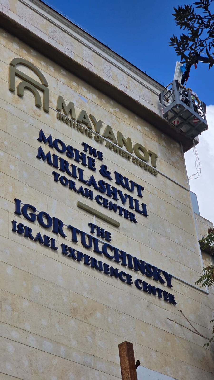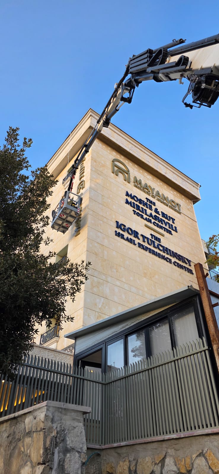 את השלט התקנו בדיוק רב על גבי אבנים ירושלמיות מסותתות כולל תאורה אחורית עדינו יפה ומוסתרת.
