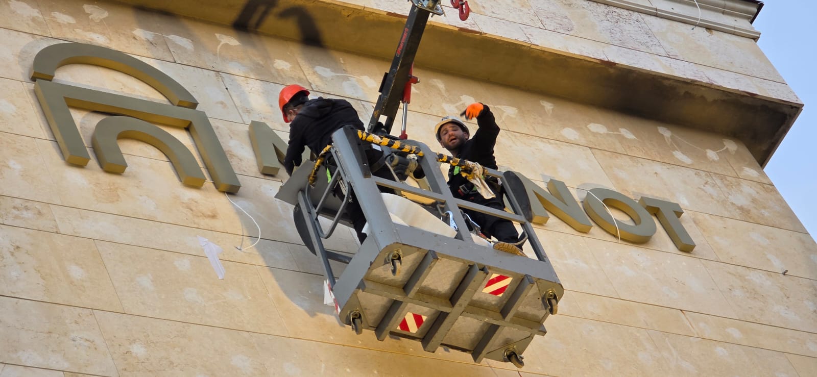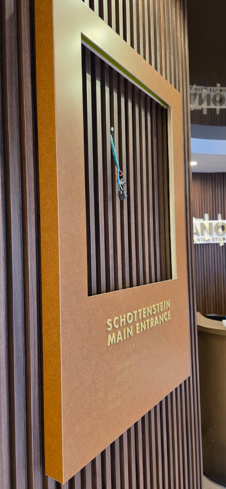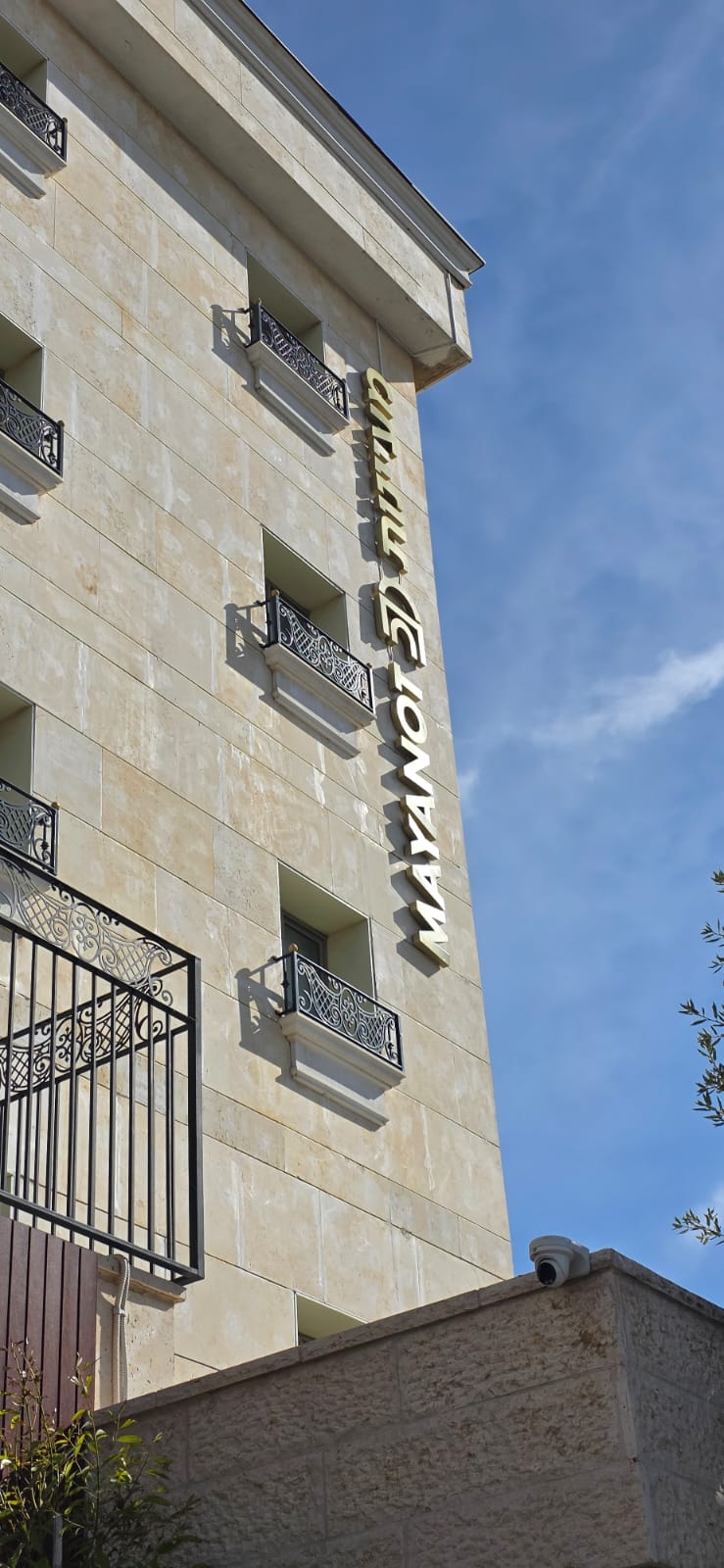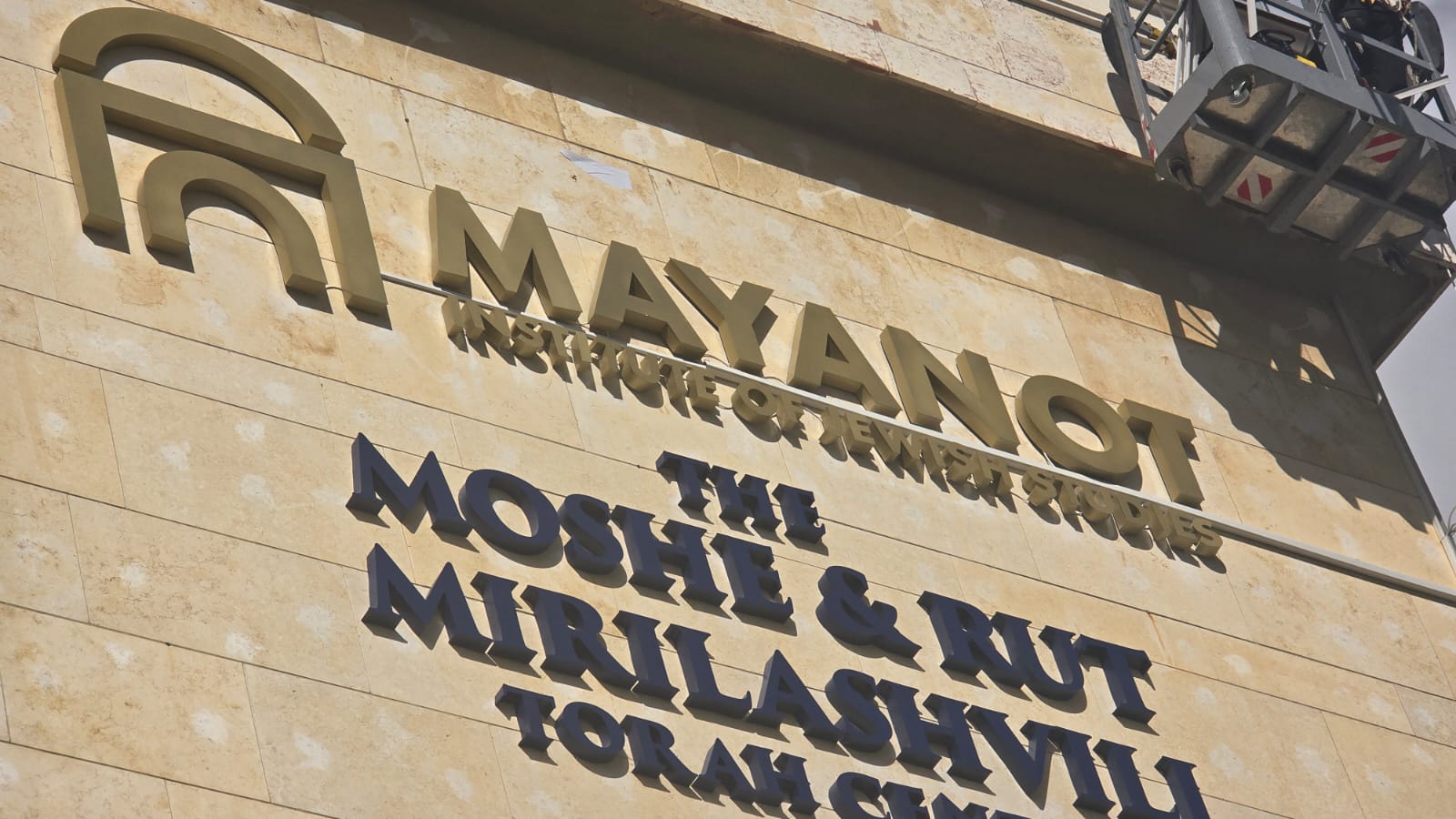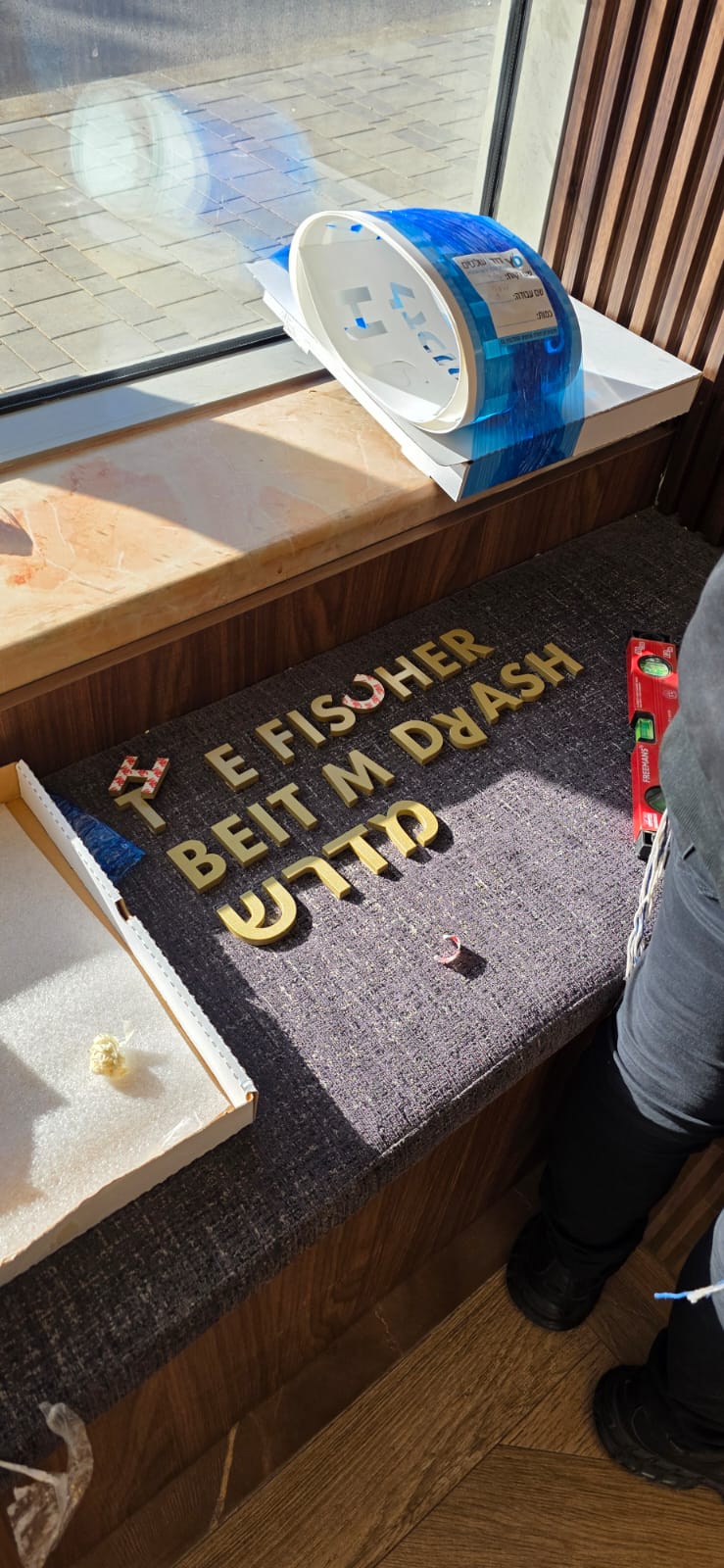 את השלט התקנו בדיוק רב על גבי אבנים ירושלמיות מסותתות כולל תאורה אחורית עדינו יפה ומוסתרת.