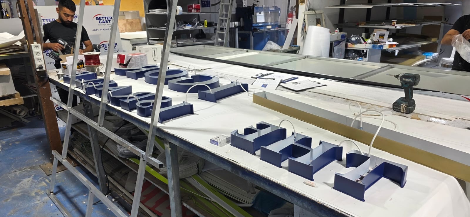 – בניית מסגרת לפי ציור שהלקוח צייר. ויציקת לוגו מברזל.הלקוח לא רצה שיראו ברגים