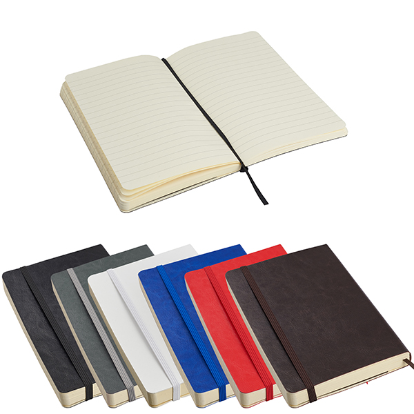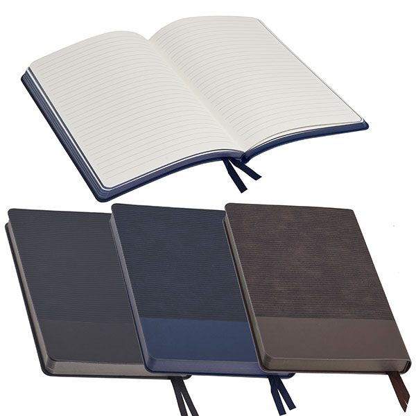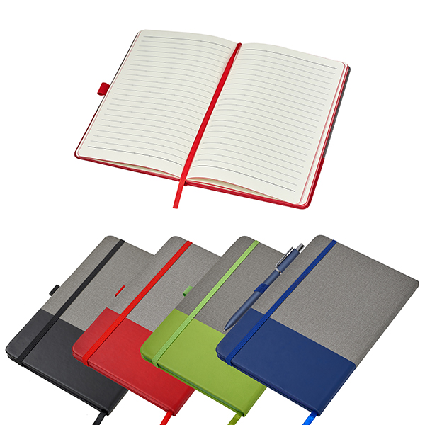מחברת 21/15 ס”מ , כריכה אפורה דמוי עור קשיח ,עם תופסן לעט בחזית, דו כיוונית- פתיחה עברית או אנגלית , התופסן לעט וגם שולי הדפים בצבע משתנה, 80 דף,דגם 4875