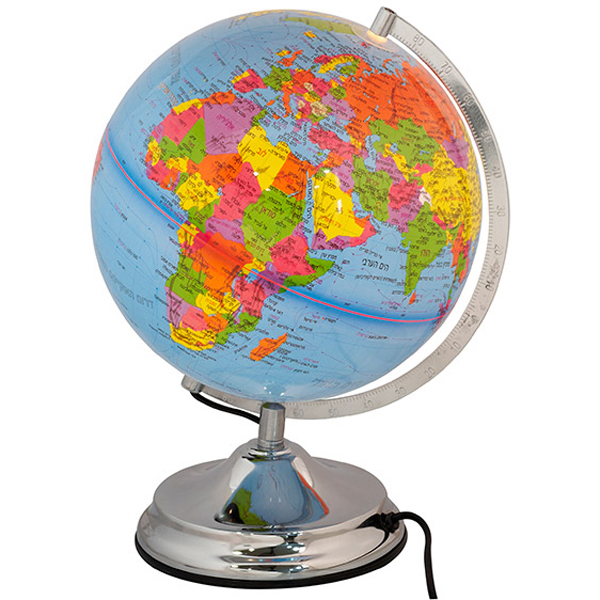 גלובוס מפת העולם בעברית עם תאורה