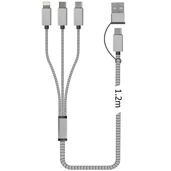 אורך: 1.2 מטר. תואם: Type-C/iPhone/Android Micro.