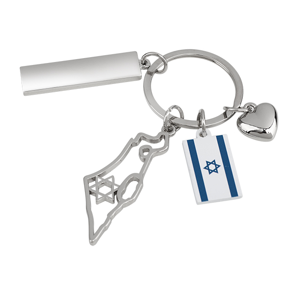 מחזיק מפתחות מתכתי "מפת ישראל עם מגן דוד, לב ודגל ישראל" דגם 5376