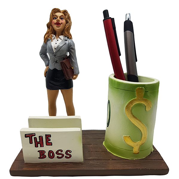 עיצוב יוקרתי עם כוס לעטים ומעמד לכרטיסי ביקור.