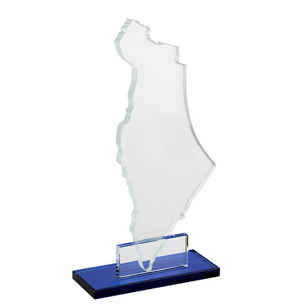 מגן ייחודי עם מפת ארץ ישראל על בסיס זכוכית כחול.