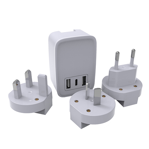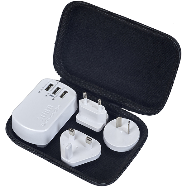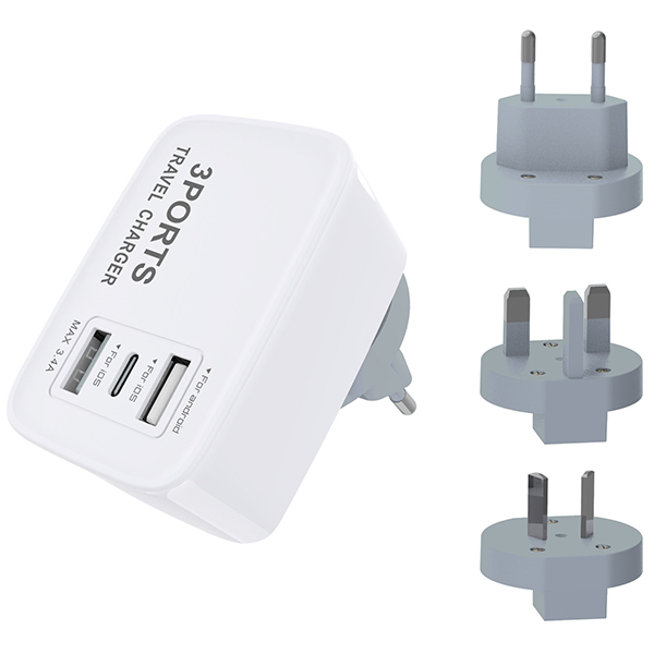 ערכת טעינה בינלאומית מבית Charge-it עם 3 יציאות בהספק 3.4אמפר : X2 שקעי USB 1X TYPE-C , כולם Quick Charging ,בנרתיק קשיח דגם CH-4153 מאושר CB על פי בדיקת EuroFins Gmbh בגרמניה